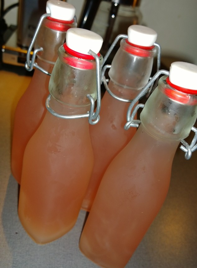 Jag har kokat äppelsaft idag på en drös Ingrid Marie som blåste ner i stormen. Tanken är att den ska bli äppelglögg så småningom, då kokar man upp en halvliter saft med några kanelstänger, kryddnejlikor och kanske en vaniljstång eller några kardemummakärnor, lite färskpressad apelsinsaft, några dl vitt vin och en skvätt konjak.. Mums!
