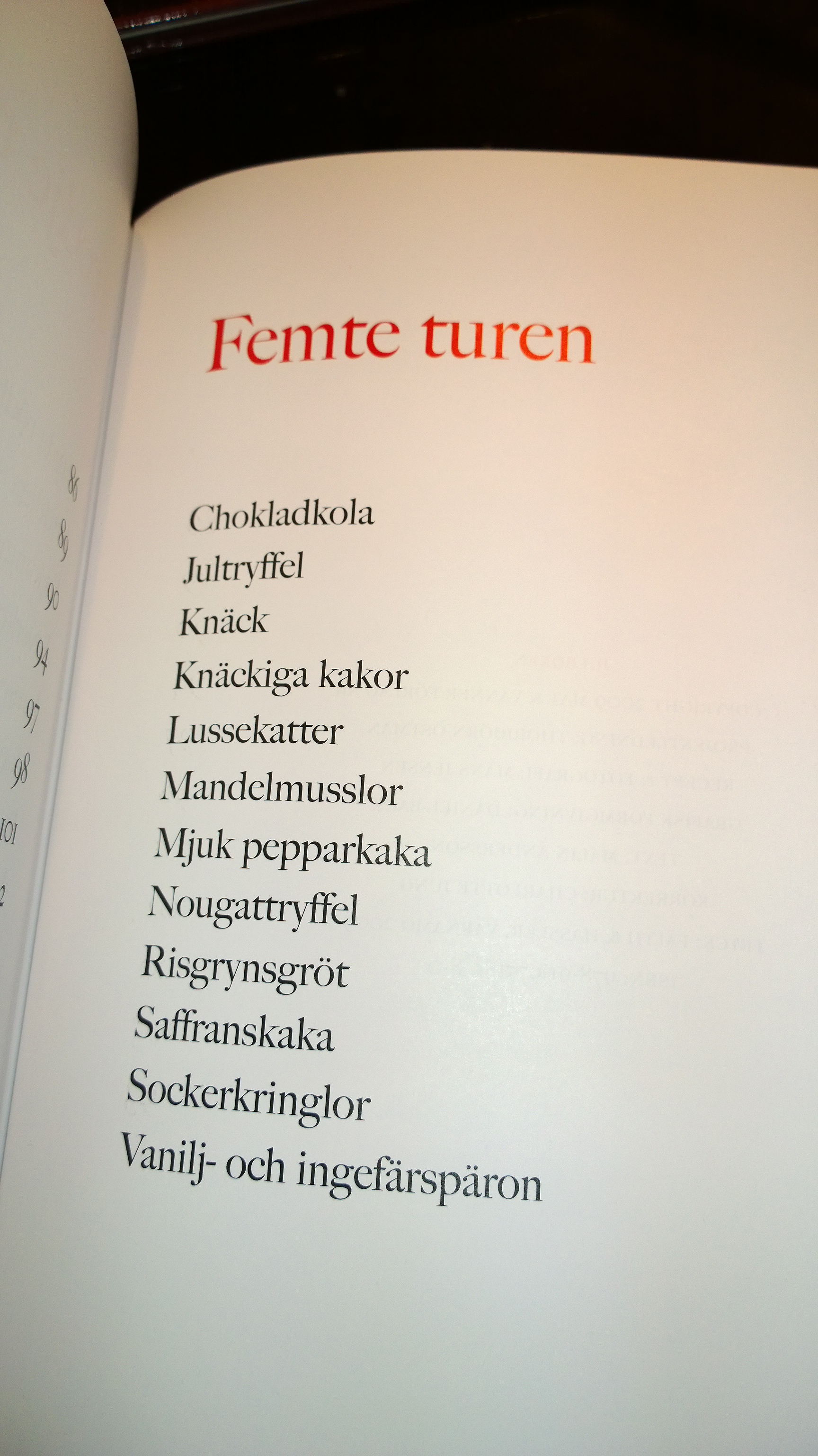 Har hunnit bläddra en del i den nu, och jag måste säga att jag gillar vad jag ser! Har iofs inte hunnit provlaga nåt recept än, men jag gillar hur boken är uppbyggd, inte i alfabetisk ordning och inte grupperat efter råvaror, utan efter i vilken ordning man äter av det på julbordet! 🙂