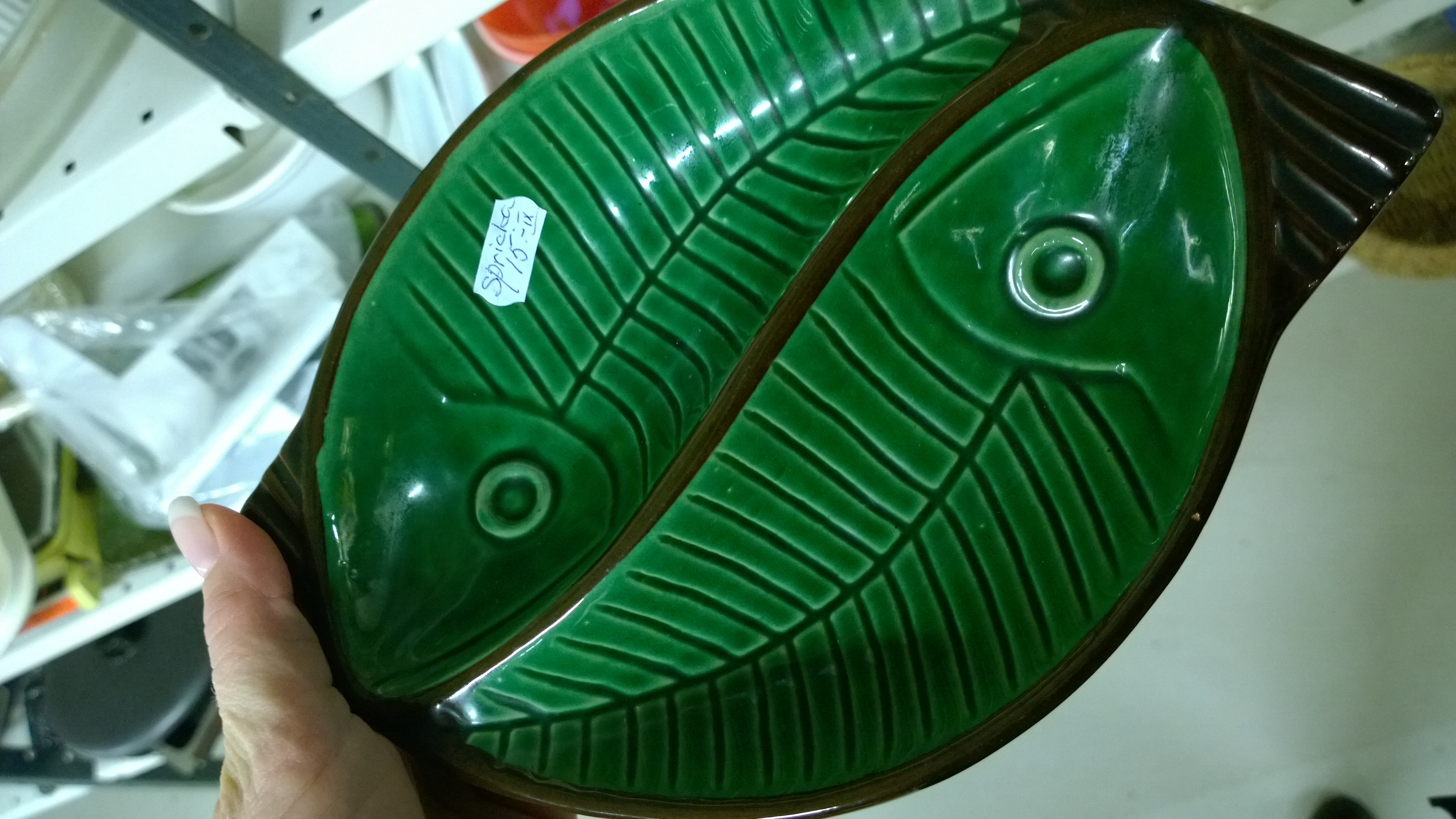 Och det här fina sillfatet hade lätt fått följa med mig hem om det bara inte hade haft en spricka tvärs över den ena fisken.. 😦