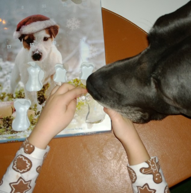 Vovven har fått en egen adventskalender fylld med hundgodis! Jag hade ingen aning om att det fanns förrän en vän hade med sig den till glöggpartyt i söndags.