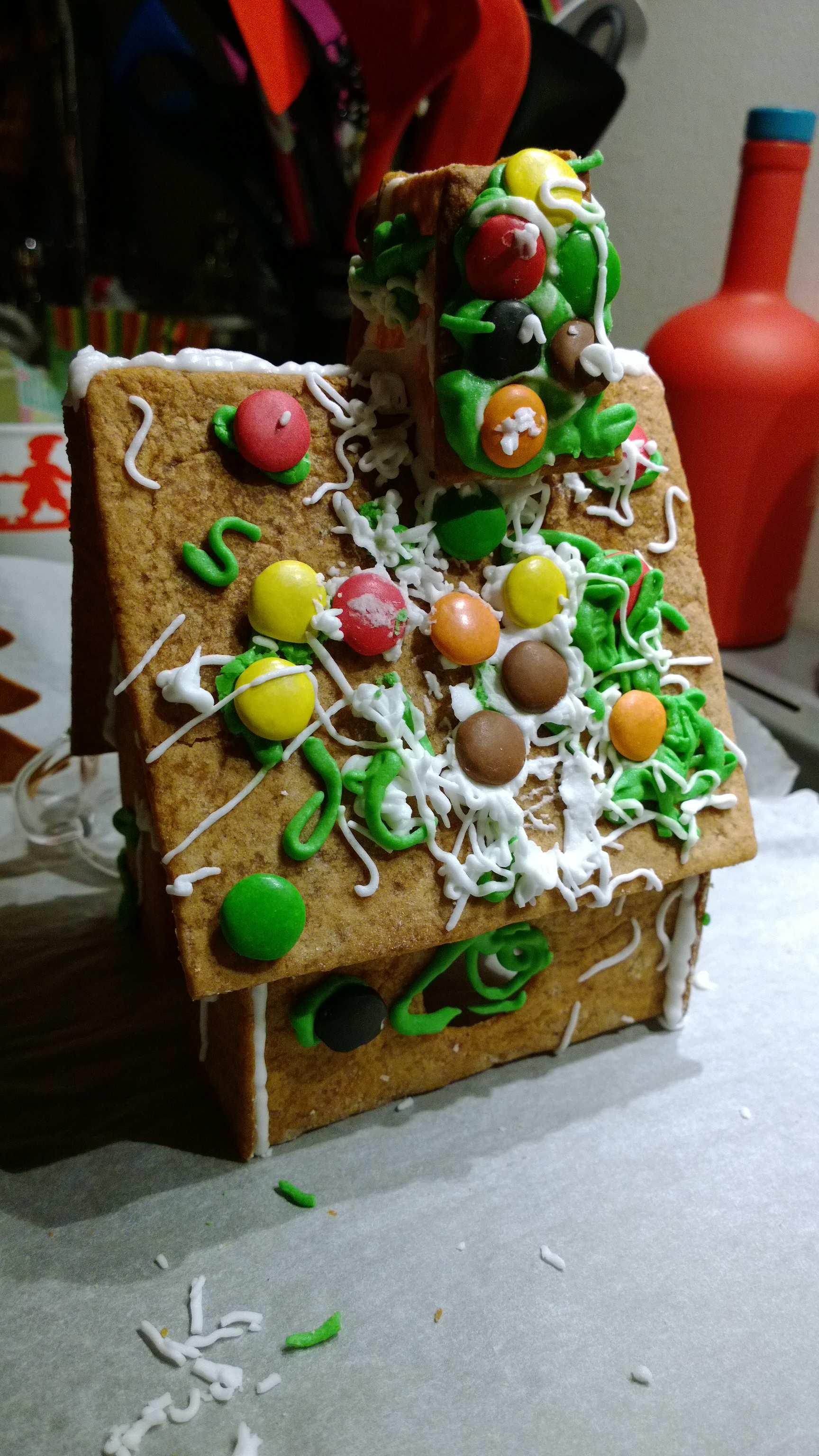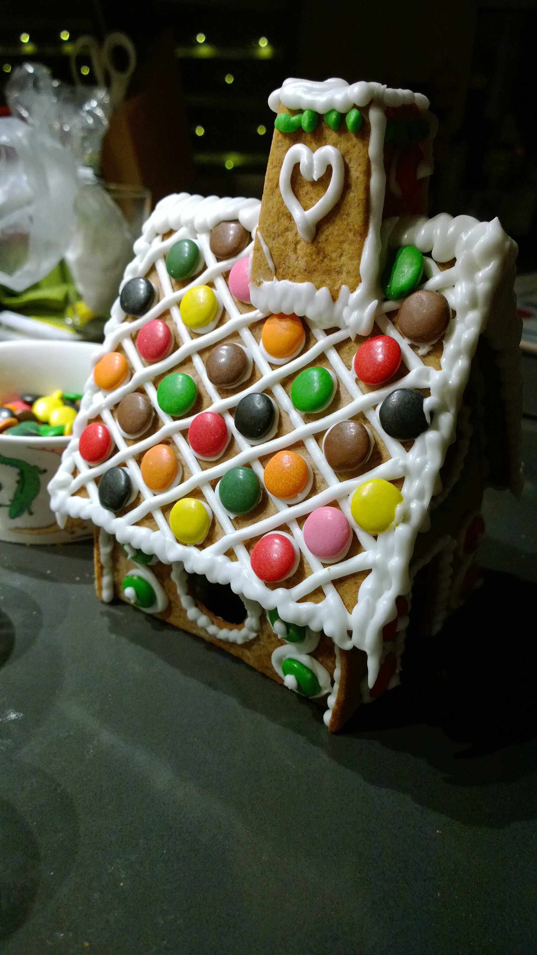 Efter det var det dags att pimpa våra verk med färgglada chokladlinser! Den ena av oss lite mer modest än den andra…