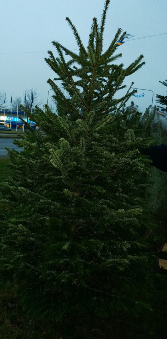 Ännu en punkt på min jullista är avklarad! Efter att ha varit beredd att leta hos alla granförsäljare i stan hittade jag äntligen den, efter bara fem stopp!! Granen ned stort G! Kanske inte riktigt så hög som jag egentligen önskade, men en tät och välformad kungsgran blev det!