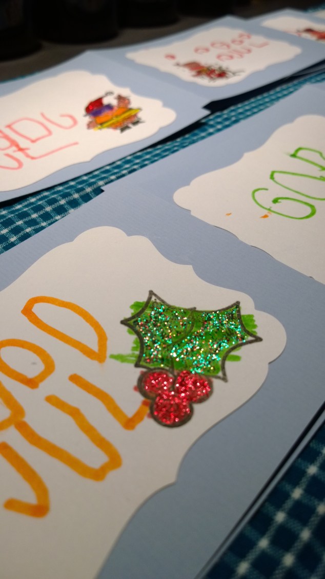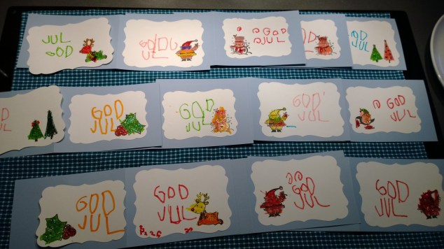 Årets julkort! 20 december, 2013Julpussar Nu borde rimligtvis alla julkort nått sina mottagare så nu vågar jag visa bilderna. Dottern och jag har gemensamt pysslat ihop dessa, hon var mest nöjd med glittret och sin skrivinsats! Dela det här: Klicka för att dela på X (Öppnas i ett nytt fönster) X Klicka för att dela på Facebook (Öppnas i ett nytt fönster) Facebook Gilla Laddar in … Relaterade