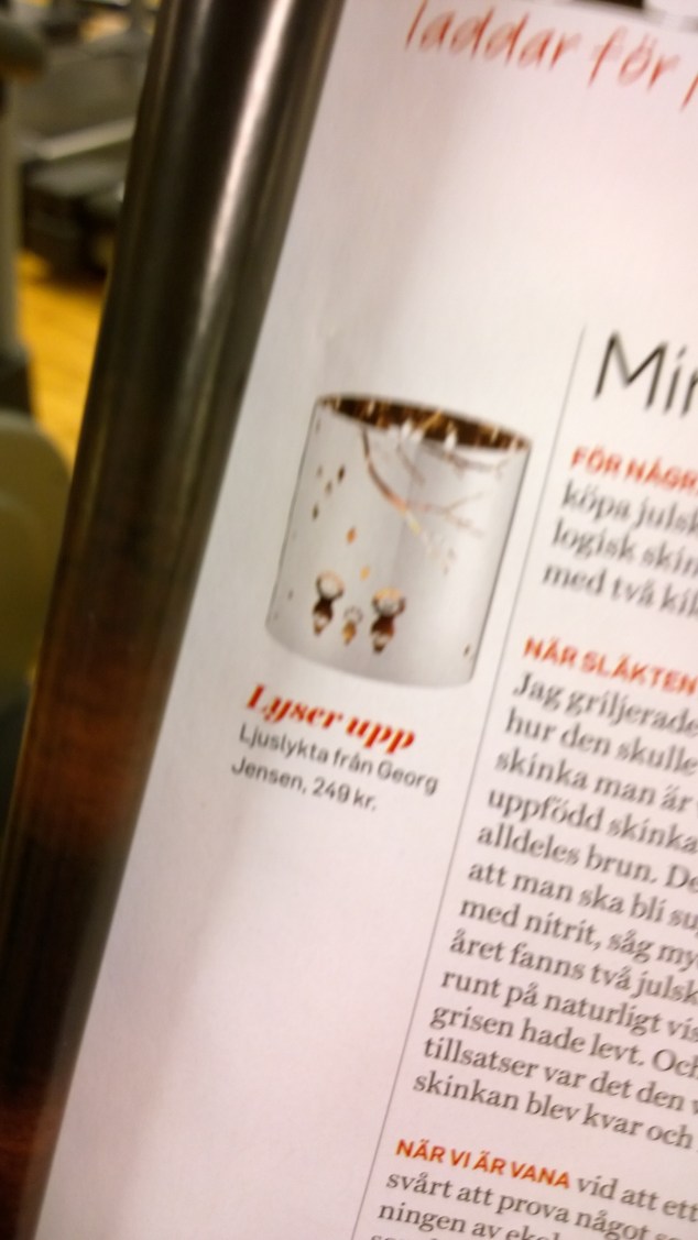Den här tidningen mötte mig i morse på gymmet, gissa om jag blev julsugen! Blev kvar en dryg halvtimme i cardion bara för att jag var tvungen att bläddra i den. Jag som bara skulle värma upp i tio minuter…