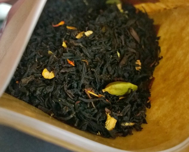 Det påminner väldigt mycket om ett chaite, men det är väl egentligen inte så konstigt eftersom det innehåller ungefär samma kryddor. Och själva teet är av bra kvalitet, med stora fina bitar av teblad och man ser tydligt vad det är för kryddor, kolla bara in kardemummakapseln i bilden här nedan!