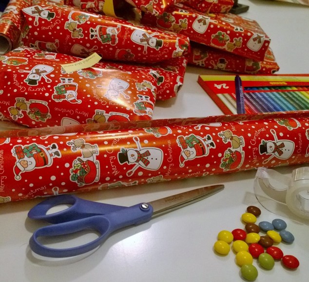 Har lånat ut dottern till svärföräldrarna för ikväll och passar på att slå in paketen till hennes adventskalender.. I år blir det tyvärr mer paket än gemensamma aktiviteter men det är svårt att planera in roliga aktiviteter tillsammans med en oberäknelig spädis i familjen.. Får försöka klämma in bullbak, granshopping och liknande när det passar med lillprinsens ät- och sovschema istället! Hur som helst så betyder inte det här att hon kommer att drunkna i leksaker, de flesta paketen innehåller sånt hon ändå skulle ha fått som t ex kläder eller nya tuschpennor.
