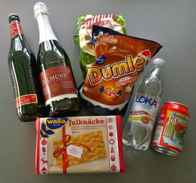 Jag har så dålig karaktär ibland.. Skulle ju bara snabbt inom Netto och köpa en liter mjölk men kom ut med allt det här. Julknäcket är en gammal favorit, saffransgifflarna och pepparkaksdumlen oemotståndliga, men det jag är mest nyfiken på är de två flaskorna julmust längst till vänster i bild, bägge från Dufvenkrooks/Herrljunga. Tänkte provsmaka till helgen och (förutsatt att de är goda) servera på julafton! Lite festligare än en vanlig julmust på petflaska..