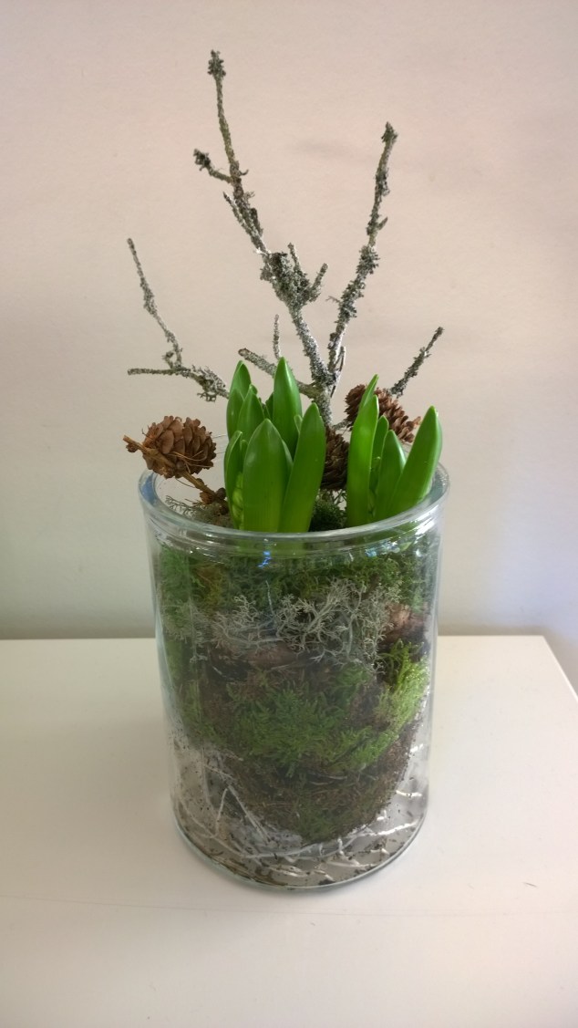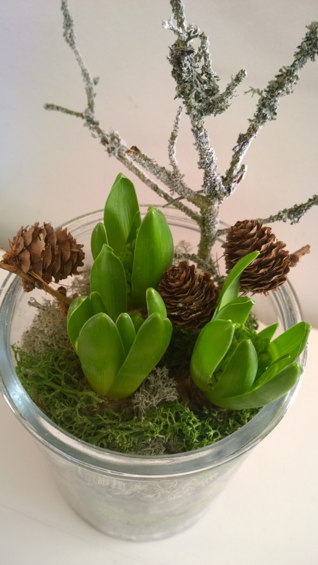 Min fina svärmor måste ha läst mina tankar om att jag ville ha fler hyacinter för hon skickade den här med dottern hem i fredags, så enkel och fin! Längtar tills de slår ut..