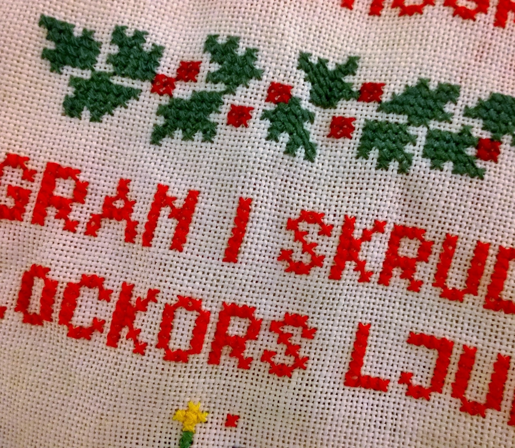 Eller så får jag helt enkelt räknas som en äldre dam… 🙂 Inför förra julen började jag på ett korsstygnsbroderi; den här vepan som vissa av er kanske minns…