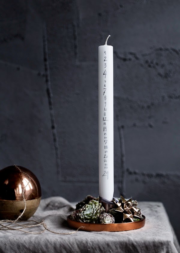 Så himla enkelt och fint, men ändå med en kul twist i form av de ”handskrivna” siffrorna… Letade som hastigast på nätet efter en webbshop som sålde dem och hittade två. Dels en av mina favoritbutiker i Köpenhamn; Notre Dame som tyvärr inte skickar till Sverige (fast jag ska dit i början av december!) och sen Pindhus som har både den tunna versionen och blockljusversionen.