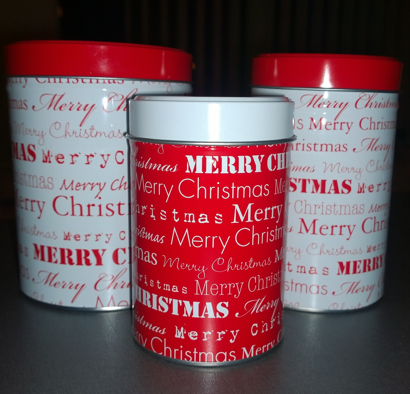 När jag var på Clas Ohlson tidigare idag och ”råkade” få med mig pepparkaksformar hem så var det inte det enda juliga som slank ner i min inköpskorg… Alldeles intill kassakön hade de ställt ut en korg med vad jag antar var förra årets julsortiment. Lite adventsstjärnor, några ljusstakar och papptallrikar med juligt mönster, allt till nedsatt pris. Klart att jag bara var tvungen att kolla igenom för att se om det fanns några fynd att göra (nåt måste man ju sysselsätta sig med när man köar!) och det fanns det! Fina plåtburkar i trepack för 19 kronor! Perfekt storlek att ge bort julgotter (kanske saffransbiscotti, eller praliner?) i tänkte jag och slog till på två set!