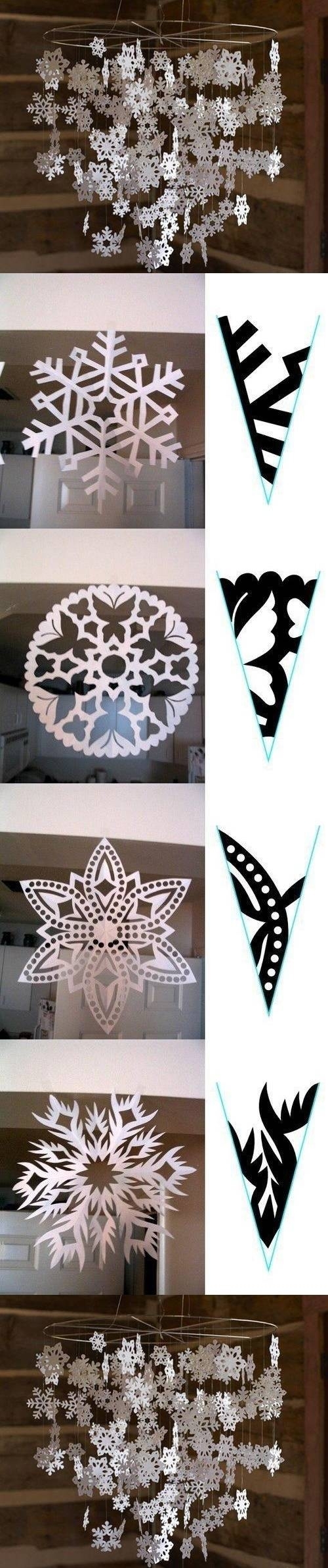Hade vi inte haft så högt i tak (5,5m, svårt att nå upp för att hänga nåt!) över köksbordet så hade jag lätt gjort en eller ett par såna här kransar/kronor och hängt över det! Så himla enkelt och så fint! Och ett perfekt pyssel att göra ihop med barnen, minns hur mycket jag själv älskade att klippa snöflingor när jag var liten!