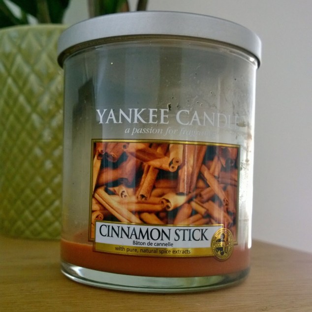 Sen gick jag förbi bokhyllan och fick mig en  liten pust av kaneldoft från ett utbrunnet juligt doftljus som visst blivit stående…