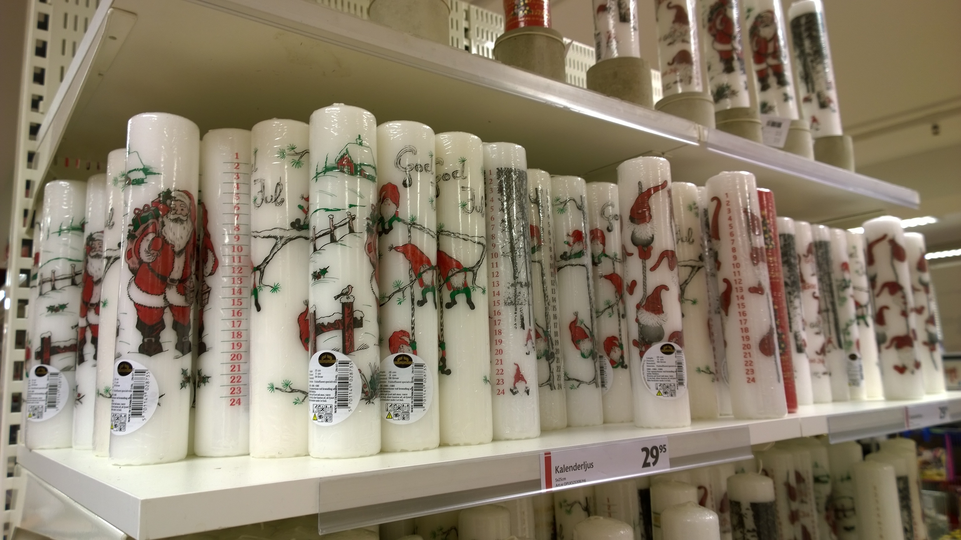 Är man på jakt efter fina julljus till bra pris så är det hit man ska! Utöver torget med ”vanliga ljus” (block-, kron-, gille- och värmeljus i rött och vitt, you name it!) i olika kvaliteter och prisklasser så hittade jag ett stort utbud med superfina datum- och kalenderljus!