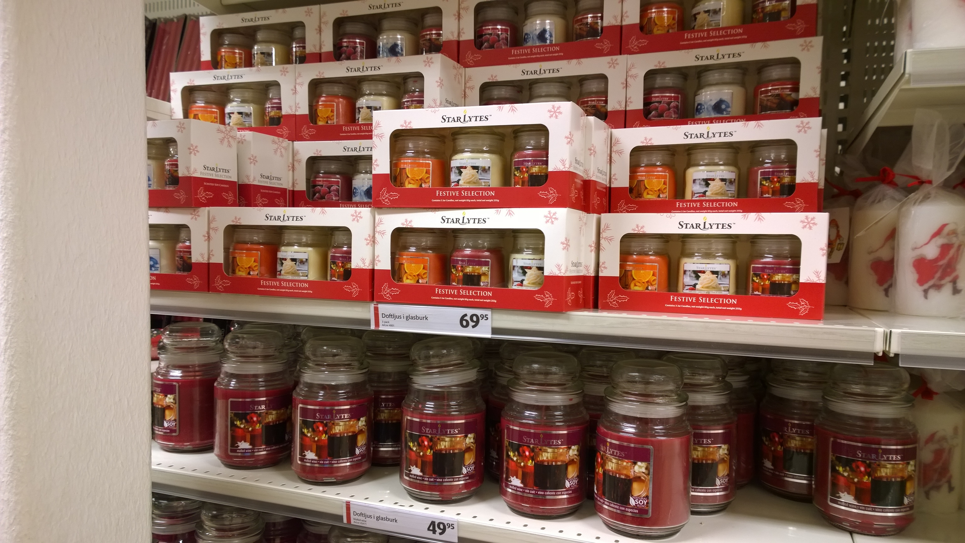 Och gillar man doftljus till bra priser så fanns det gott om juliga sådana från Star Lytes! Hann tyvärr inte provsniffa, men jag såg många med såna här ljus i sina kundvagnar!