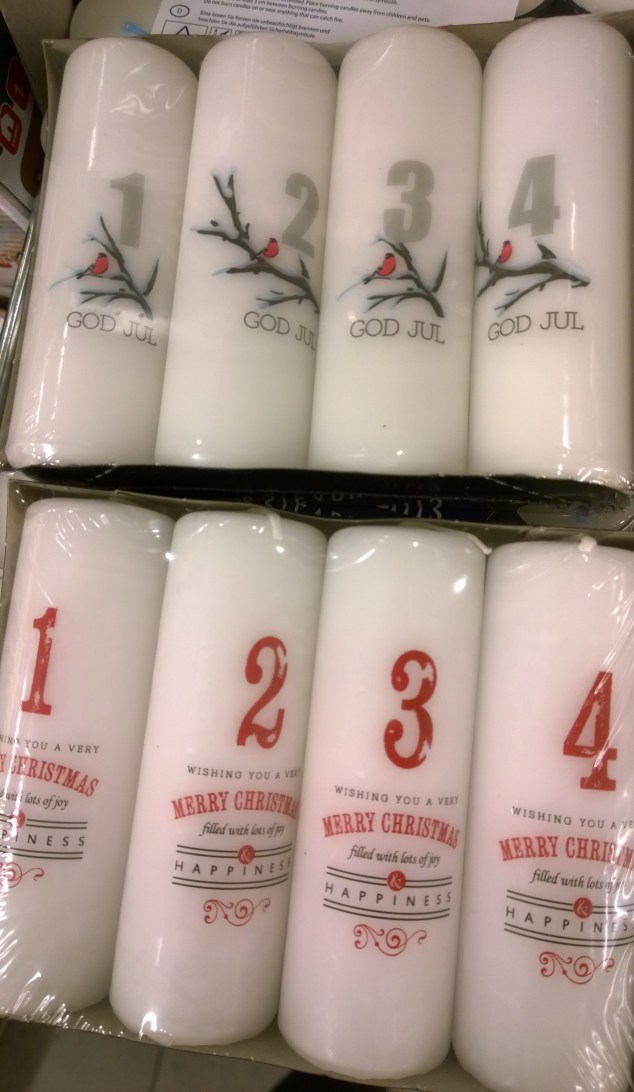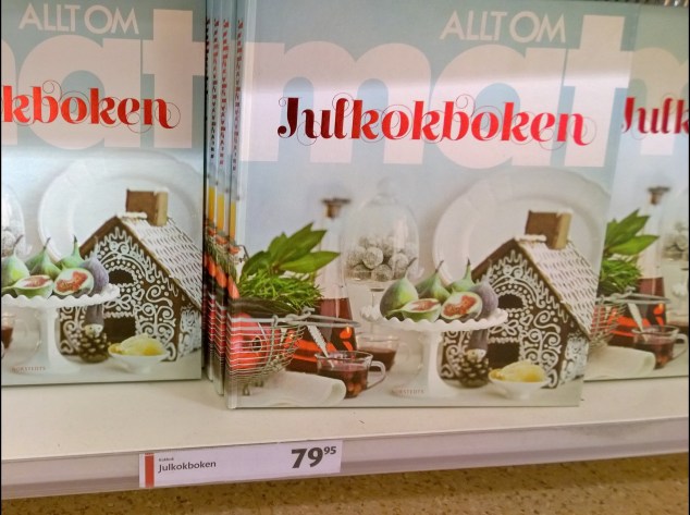 Självklart var även matavdelningen full av jul! Chokladkalendrar, julgodis, olika sorters glögg och must, pepparkakor i mängder, saffransbullar, juliga chokladaskar osv, men där blev jag så exalterad att mitt fokus skiftade en aning från dokumenterande till shoppande…… 🙂
