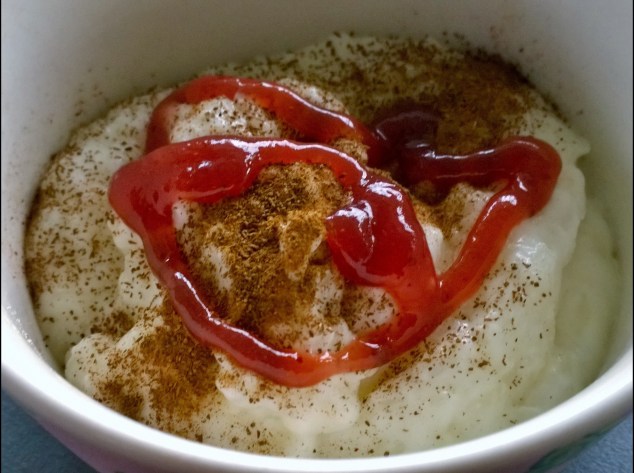 Jag höll mig inom ramarna med bara lite kanel och mjölk till min risgrynsgröt, men dottern är vågad och laddade med kombinationen kanel och jordgubbssylt!