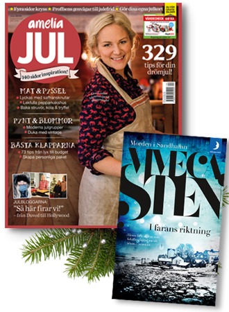 Nåväl, själva tidningen då? Så här presenteras innehållet; I det här numret av amelia Jul är det dags att frossa i decembers alla härligheter. Vi bjuder på massor av nya recept, härlig plockmat till adventsminglet, och julens nya sötsaker. Vi har också letat fram de bästa julklappstipsen för hela familjen och julpyssel, blommor, fina stilleben och pynt för alla smaker. Dessutom hälsar vi på hos bloggarna som firar julen med extra allt!”