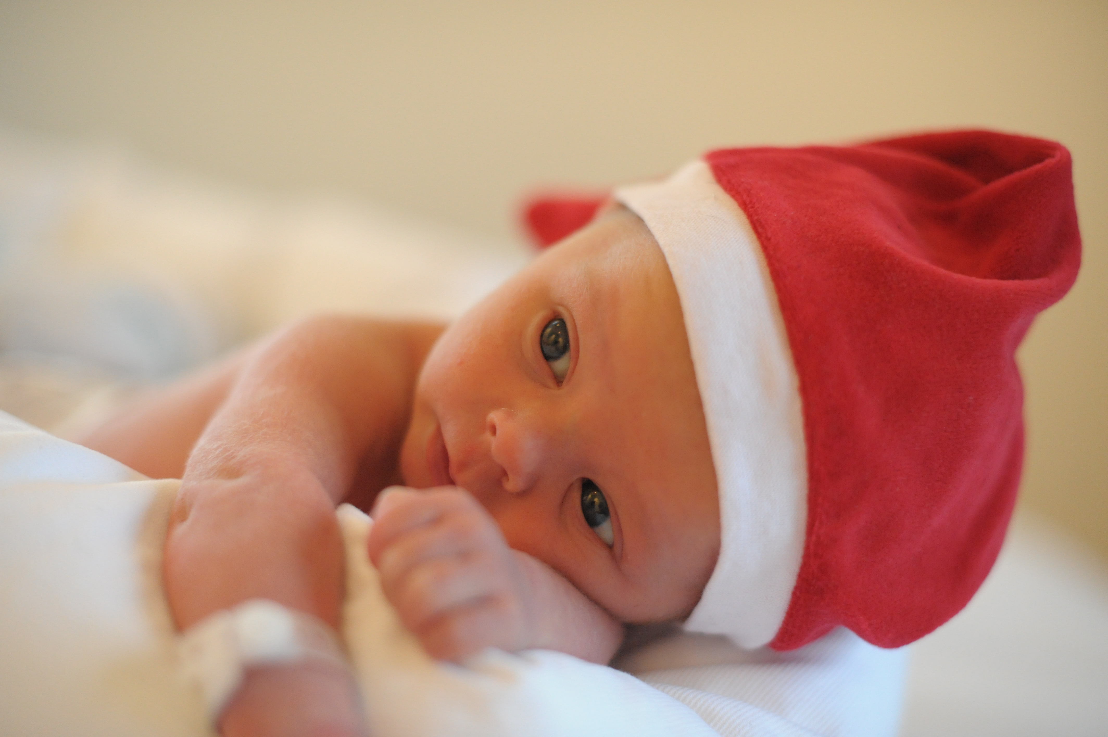 Det är fortfarande den här som ligger i topp, men i rättvisans namn får jag väl dra till med en bild på lillebror den här gången.. Han var ju bra mycket yngre när han fotades till sitt första julkort (1 månad vs 8 månader) och bilden blir ju liksom lite därefter; nyfödda bebisar är inte sådär jättebra på att posera… Dessutom var han tyvärr tvungen att ha sitt id-band på sig eftersom han fortfarande var inskriven på neonatalavdelningen, jag har försökt ”maskera” det med ett väldigt kort skärpedjup i bilden.
