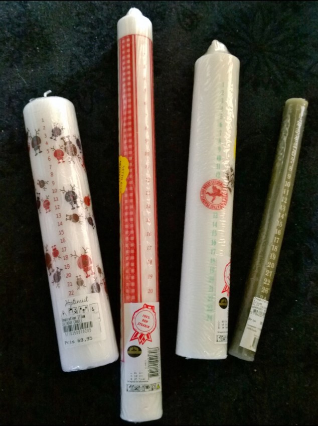 Förra året grubblade jag rätt mycket över kalenderljus, men till slut blev det ett panikköpt vanligt smalt i stearin från Liljeholmens ändå. Men i år har jag minsann problem av annan karaktär! Vis av grubblerierna slog jag till när de reades ut efter jul, så i år har jag redan fyra olika ljus att välja mellan, alla lika fina.. Så frågan är, vilket ska få den stora äran att pryda vårt köksbord i år?