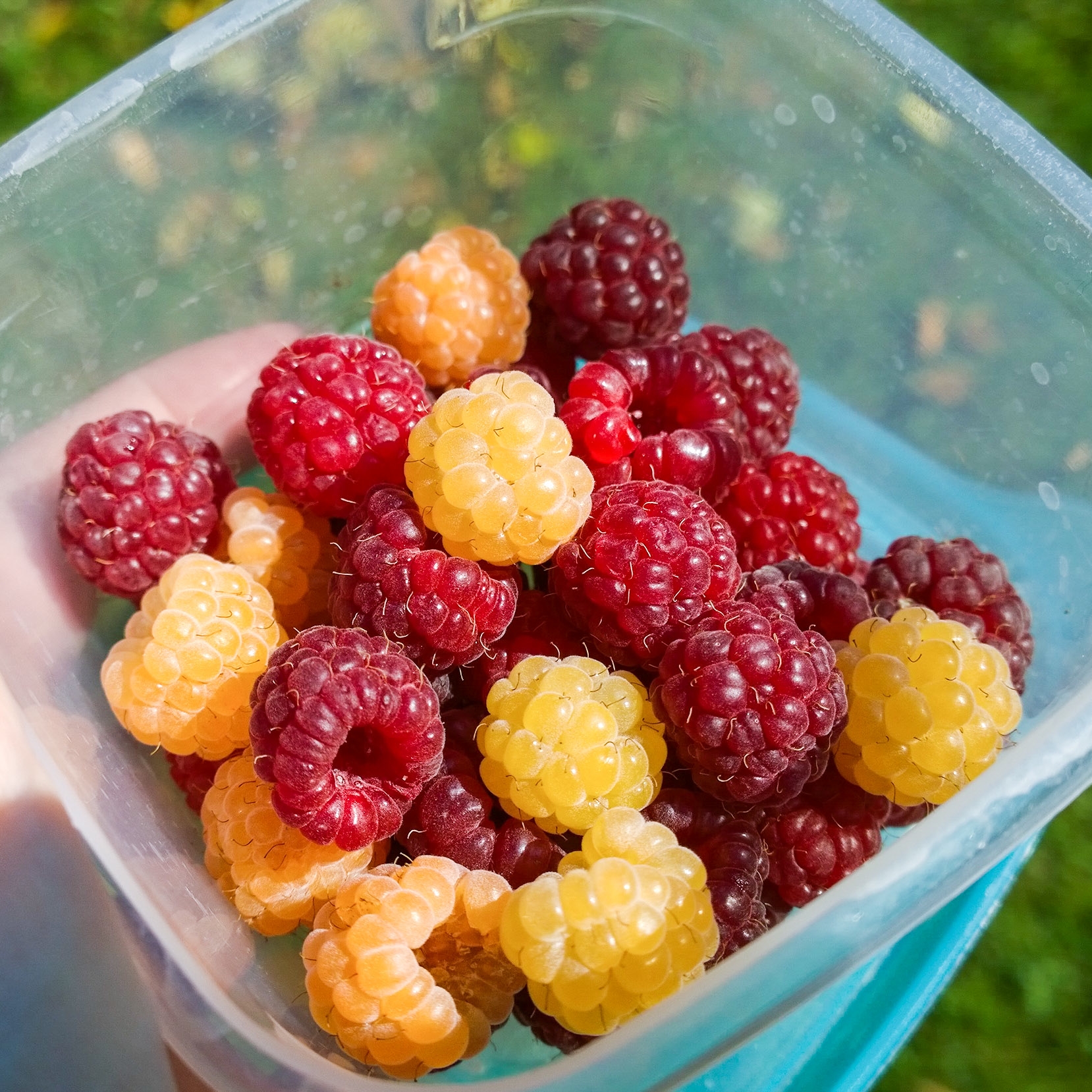 När de kommit hem igen var det dags för lite trädgårdsjobb i det fina vädret! Rensade lite i grönsakslandet, beskar en vinbärsbuske, räfsade löv och skördade lite hösthallon!