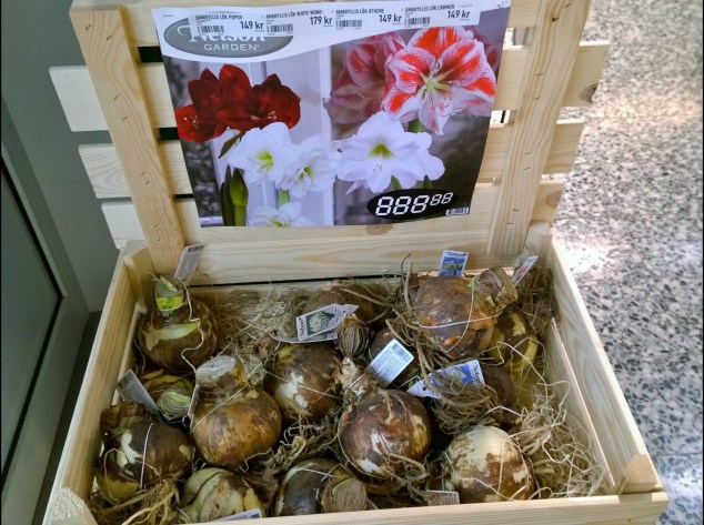 Var på Granngården i helgen som gick för att köpa hundmat och sprang på de här fina amaryllislökarna! Börjar bli hög tid att tänka till om vad man ska ha för blommor till jul om man ska driva fram dem själv!