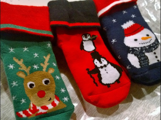 Hade en bonuscheck på HM som jag tänkte omvandla till en halloweenkostym åt storasyster när jag fick syn på de här raringarna! Klart lillebror ska ha julstrumpor med renar och snögubbar på! Pingvinerna fick hänga med de också… 😊 (Och storasyster fick såklart sin halloweenkostym.)