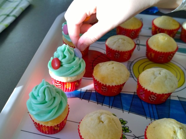 Nä, vi gjorde det enkelt för oss och skippade själva baket och hoppade rakt till de roliga bitarna istället, att dekorera kakorna!