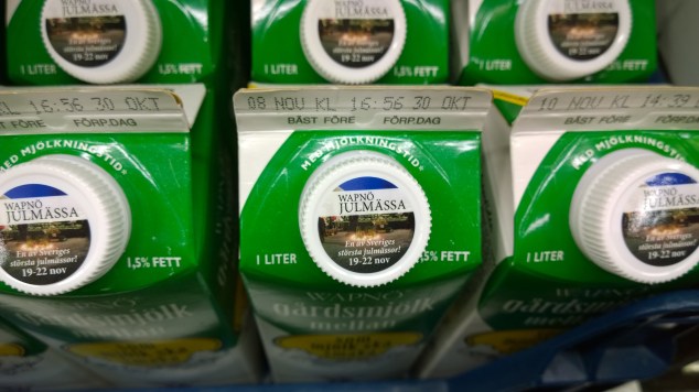 Sträckte mig efter mjölkpaketet mejeridisken och vad får jag syn på? Jo, reklam för Wapnö Julmässa på korkarna till mjölkpaketen från Wapnö mejeri! Tack för påminnelsen! 🙂