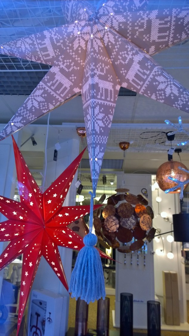 På rätt plats kanske den passar in, om man gillar lite mysigt helylle inredning, men hos mig blir det tyvärr en diss. Mina adventsstjärnor ska vara stora, vita och stilrena!
