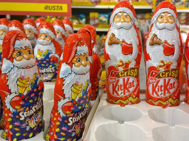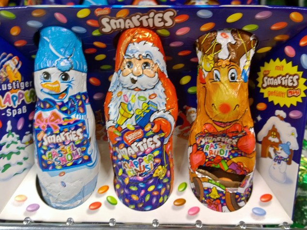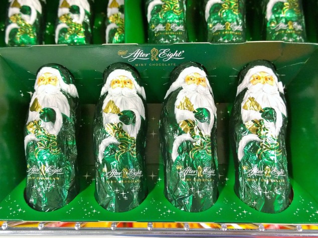 På vägen ut blev vi attackerade av en massa tomtar som prompt skulle hoppa ner i vår kundkorg och följa med oss hem! Nåja, inte mycket att göra nåt åt, chokladtomtar får gärna flytta hem till oss! 😀
