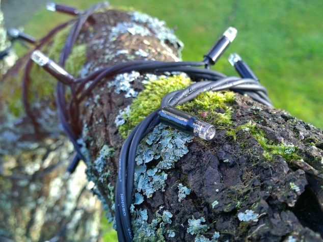 I söndags var äppelträdet äntligen lövfritt efter stormen Frejas vildsinta framfart, och det sammanföll perfekt med min lust för julstök! Alltså åkte utebelysningen fram och provtändes.
