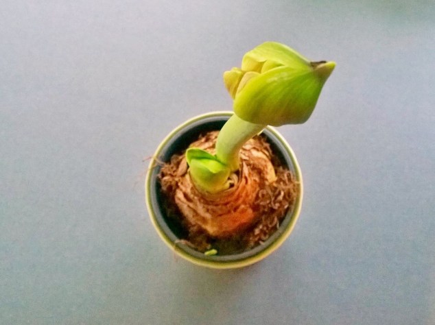 Det blev visst inte bara en hyacint som hittade hem till oss, utan en amaryllis också! Och ännu fler hyacintlökar, men de står pausade i växthuset för tillfället… 🙂