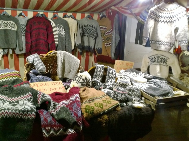 …och vad som verkade vara årets trend, plagg stickade i alpackagarn! Jag klappade både på fällen som de här mössorna låg på och fick känna på ullen som man har och spinner garnet av och jösses vad mjukt!