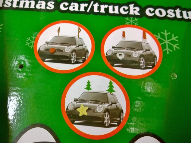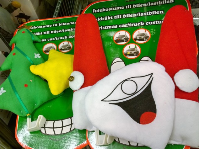 Förra året hittade jag ju en Rudolfkostym till bilen på Netto, dessutom hade jag den stora turen att även få se irl också, på en bil vars ägare inte var riktigt lika feg som jag.. I år verkar de ha tagit konceptet inte bara ett, men två steg längre! Eller vad sägs om en tomte- respektive granoutfit till bilen?