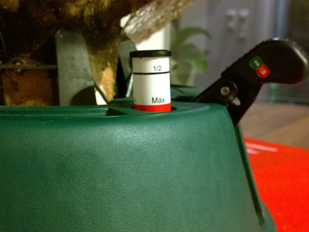 Vi tog in granen i fredags kväll och fyllde på julgransfoten med vatten upp till maxnivå…