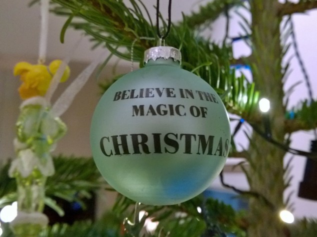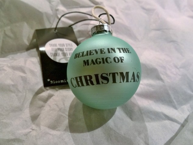 Den här julgranskulan från Bloomingville såg jag på Magasin du Nord redan när vi var i Köpenhamn innan jul, men av olika anledningar (hungriga barn och för långa kassaköer) blev det inget köp då, något jag ångrat lite i efterhand.. Så döm om min glädje när jag hittade den igår, till halva priset dessutom! Visserligen är den av glas och ömtålig, men jag kunde bara inte låta bli att hänga upp den i granen när vi kom hem igårkväll… 🙂
