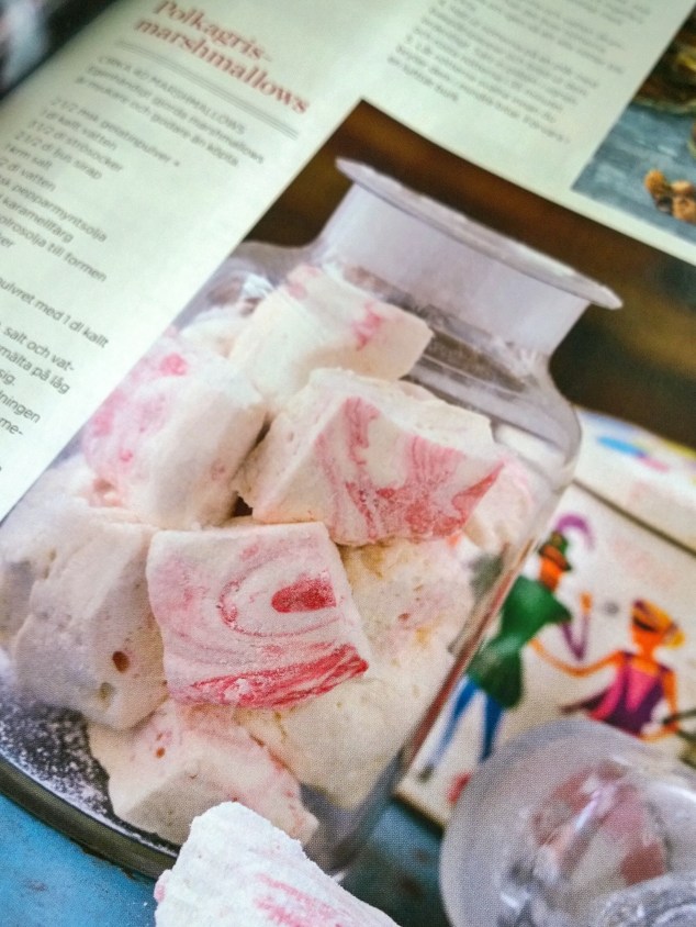 Och det här receptet på polkagrismarshmallows bara måste jag testa!! Inte nog med att det låter supersmarrigt, de ser verkligen urgoda ut på bilden!