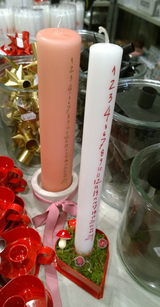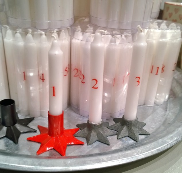 Jag gillar den danska modellen av kalenderljus också, där man istället för ett stort ljus tänder ett julgransljus om dagen varje dag fram till jul… Den stora frågan är väl om man har alla ljus framme redan den 1:a december? Blir ju rätt många tomma ljusstakar framåt julafton då…
