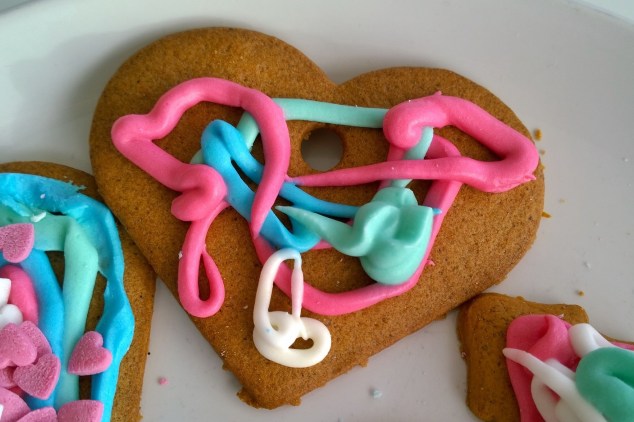 Årets första adventspyssel blev en favorit i repris; köpepepparkakor, färgad kristyr, passande dekorationer form av strössel & chokladlinser samt en handfull mycket nöjda barn! Och resultatet..? Så här fina pepparkakor! 🙂