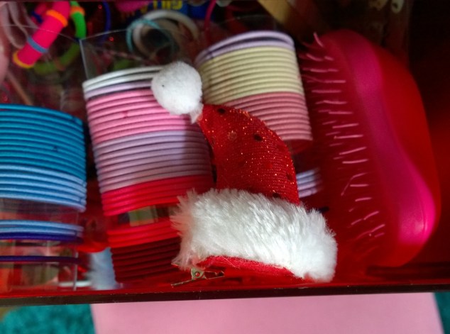 I dotterns hårbandslåda hittade jag en tomteluva i miniformat häromdagen…Och bredvid min säng ligger som vanligt ett par magasin med julinspiration ifall andan skulle falla på… 🙂