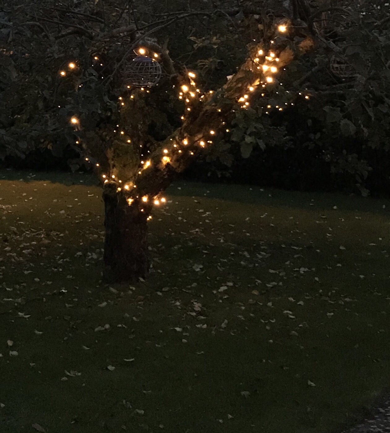 Jag brukar ha som tumregel att när löven fallit av träden så ska ljusslingorna upp, men i år gjorde vi ett undantag (har ett segt äppelträd som fortfarande har en del blad kvar) och det är jag glad för! Nu känns det genast mycket bättre när man kikar ut genom fönstren och blicken möts av tindrande ljus istället för ett kompakt mörker.. 🙂