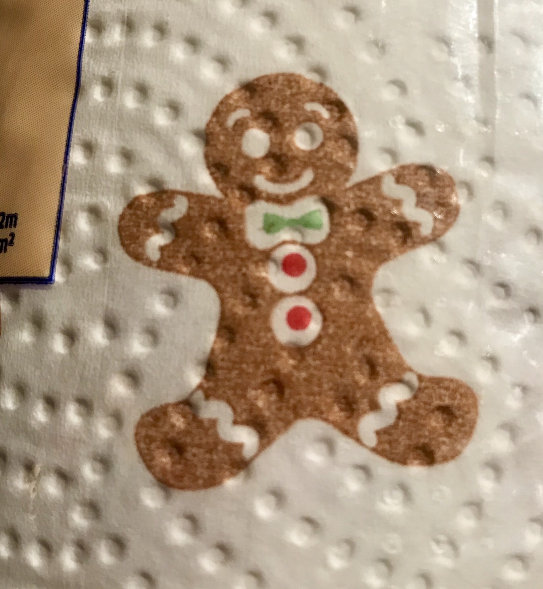 Och slutligen, i min jakt efter danskt julgodis & ekologiskt mjöl i en mataffär sprang jag på det här! Hushållspapper med pepparkaksgubbar på!!