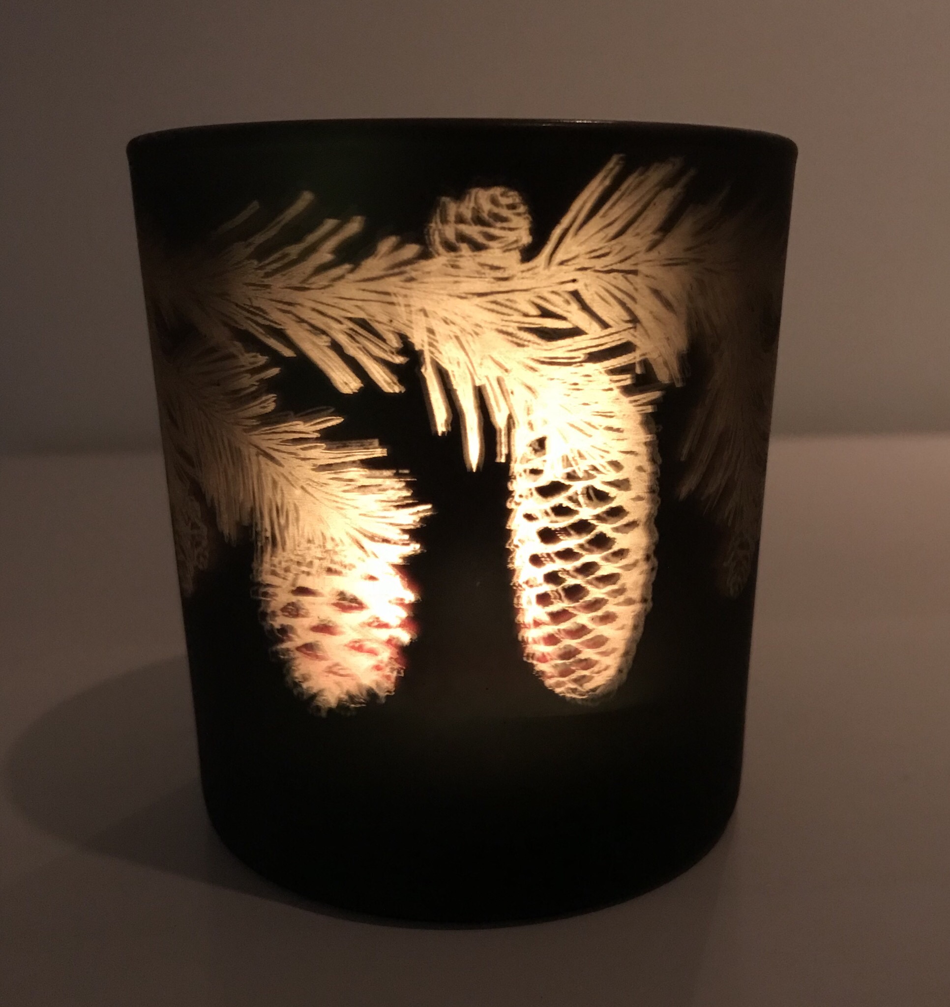 Den här lilla ljuskoppen för värmeljus ropade faktiskt mitt namn inne i affären, eller jag tyckte i alla fall mig höra det.. Fin är den hur som helst med sin dekor av granris & kottar!