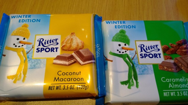 Jag är som bekant en sucker för choklad och dessutom väldigt förtjust i juliga smaker så gissa om jag blev glad när jag sprang på de här i Tyskland förra helgen? Ritter Sport är lite av en favorit hos oss och deras vintersmaker har aldrig gjort mig besviken…