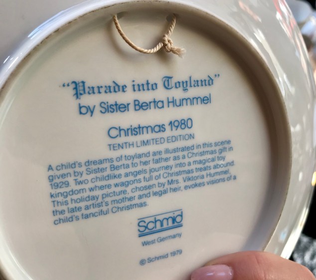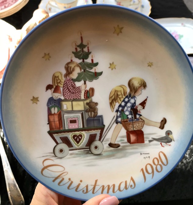 Och är det något jag ångrar från vår lilla loppistur där i solskenet i Hamburg så är det att jag inte köpte de här två ljuvliga jultallrikarna med barnsligt söta änglar på, framför allt den övre av dem ”Parade into Toyland”… ❤