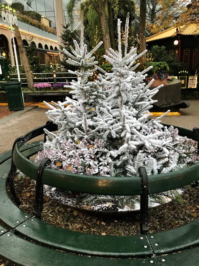 Medan de två äldsta barnen åkte karuseller för glatta livet passade jag på att strosa runt och insupa atmosfären tillsammans med en sovande lillasyster i vagnen. Och trots att Köpenhamn bjöd på gråmulet och ganska blött väder så gjorde de fantastiska blomarrangemangen och granarna att det ändå kändes mysigt och juligt! Tusentals julkulor, mängder med låtsassnö och ziljoner små ljuspunkter i form av julbelysningar kan iofs ha haft något med hela att göra…