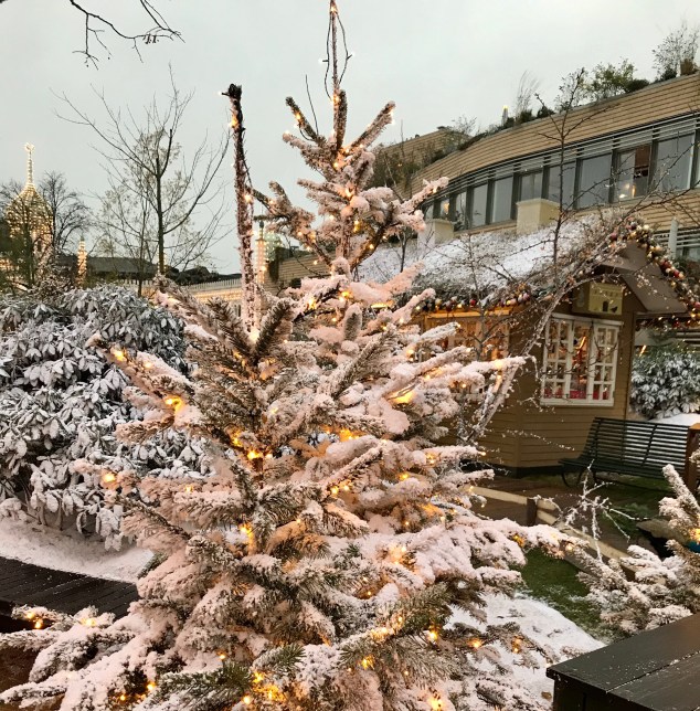 Till och med åkattraktionerna är julpyntade!