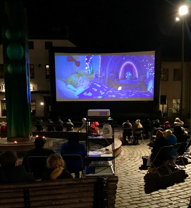 Grinchen på stor bioduk utomhus i mörkret, rätt mysigt ändå!