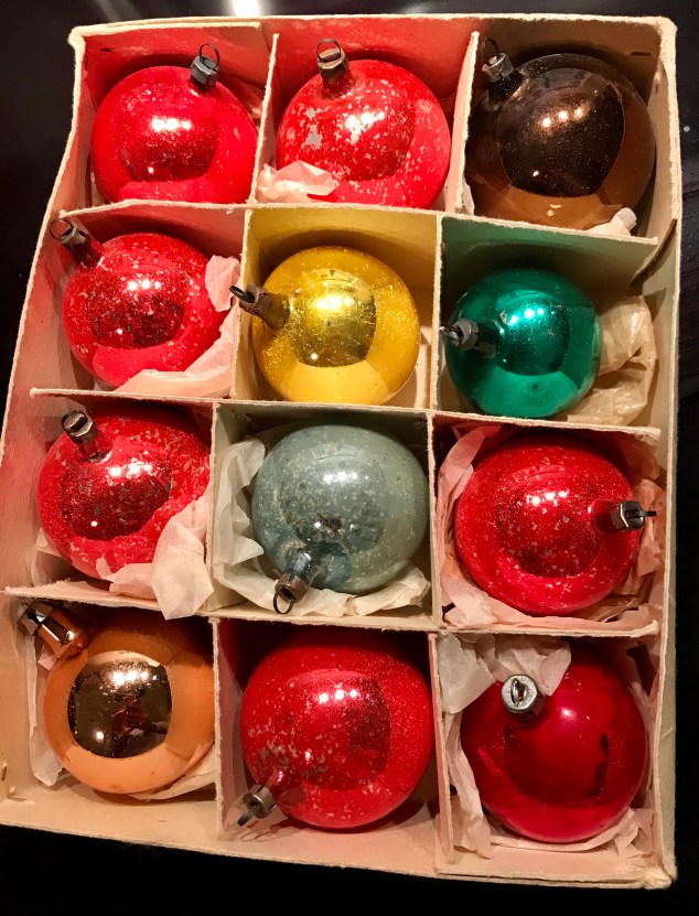 Sprang på den här lådan med gamla julkulor på en loppis igår kväll och självklart åkte den rakt ner i min shoppingkorg…